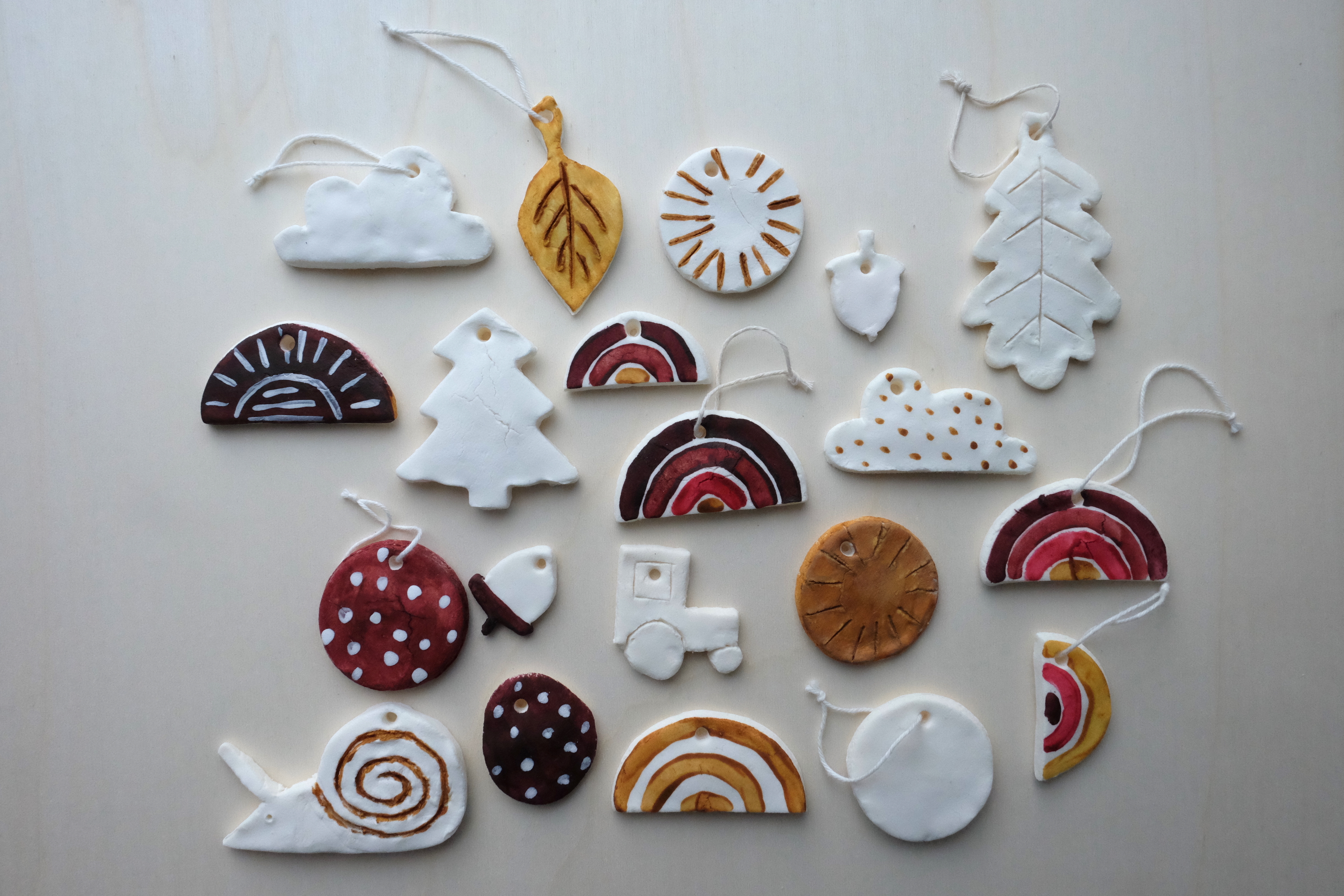 Deze ornamenten heb ik gemaakt volgens een recept van water mais meel en baking soda. Leuk om zelf klei te maken en ook nog eens heel lekker van structuur.