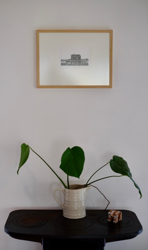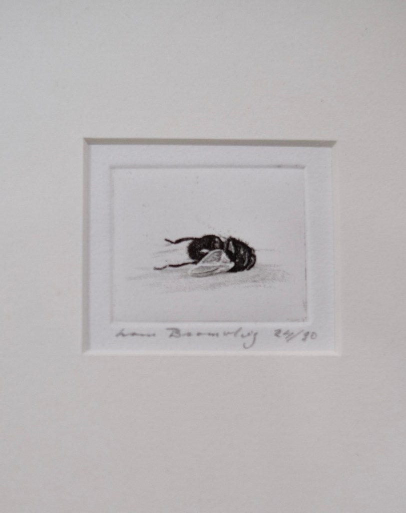 Ik mocht voor mijn verjaardag een ets bij Han van Hagen uitzoeken. Mooie simpele etsen die geïnspireerd zijn op de omgeving bij de boerderij van mijn ouders. Ik heb gekozen voor een huisje en een bromvlieg.