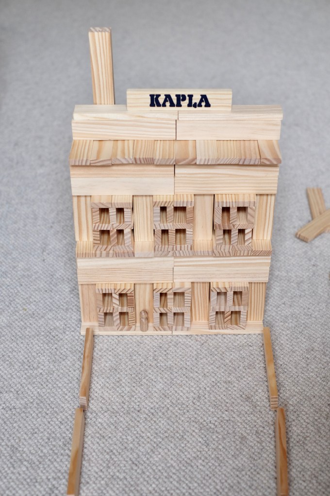 Geweldig wat je met de simpele grenen houten blokjes kunt maken. Leuk ook om als volwassene mee te spelen al kan het soms ook erg frustrerend zijn als het dak, de brug of weg weer eens instort.