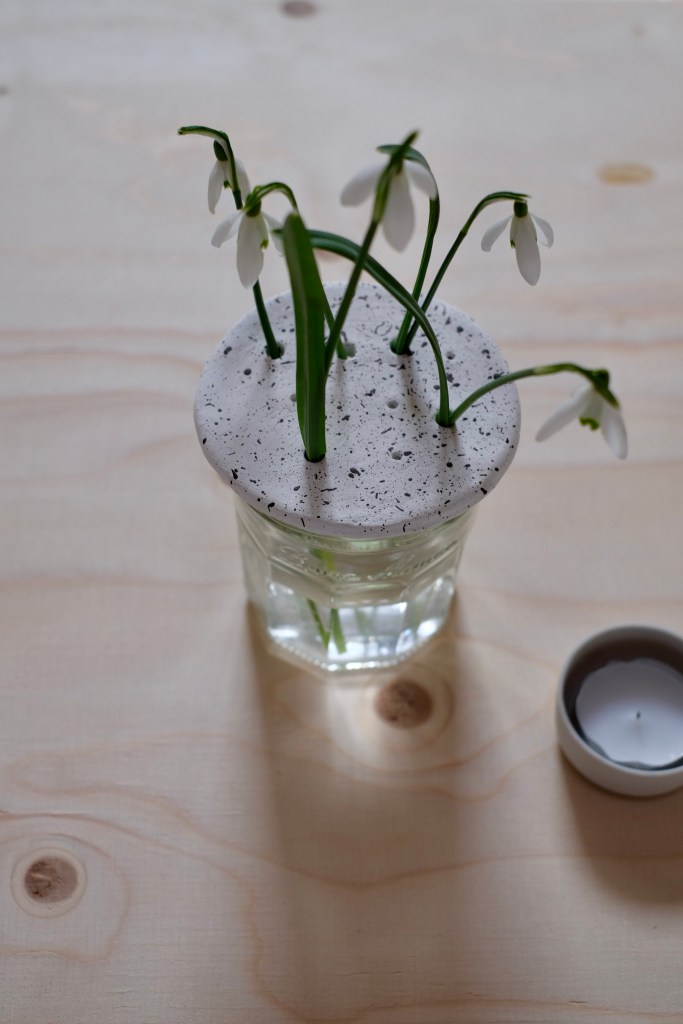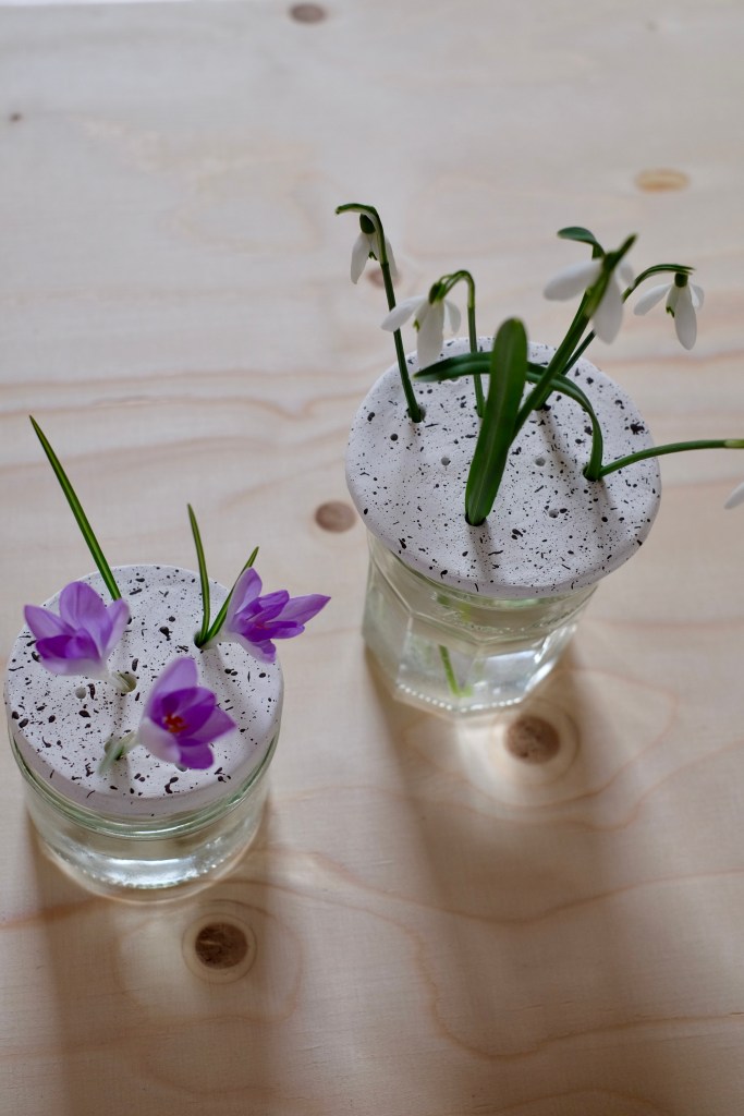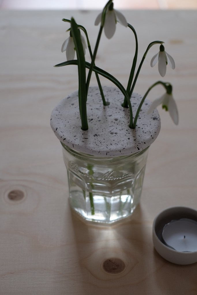 In een DIY blad stonden vaasjes of eigenlijk dekseltjes die je zelf kon maken. Ook zag ik ze in een winkel. Aangezien toen net de lockdown was gestart zijn we zelf gaan knutselen met klei en verf. Leuk om te maken en ze passen heel mooi op iedere glazen pot.