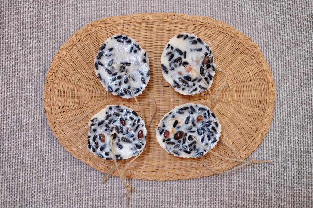 Voordat het ging sneeuwen hebben we van oude noten, rozijnen, pitjes en frituurvet eten voor de vogels gemaakt. Ze hebben er afgelopen week, toen het zo heeft gesneeuwd, veel van gegeten dus we konden weer aan de slag. Ook hebben we kettingen van pinda’s gemaakt. erg leuk om samen te doen.