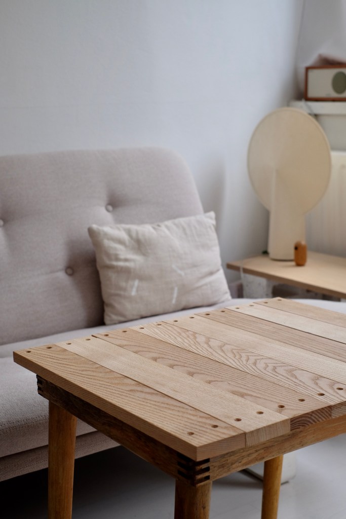 Bij het grofvuil zag ik een oud tafeltje staan. Ik ben er meerdere malen langs gelopen maar wilde het toch proberen op te knappen. Een paar dagen later kwam ik langs een container met stukjes hout. Hiervan heb ik een tafeltje gemaakt voor een interieur in Utrecht. Leuk en gratis.