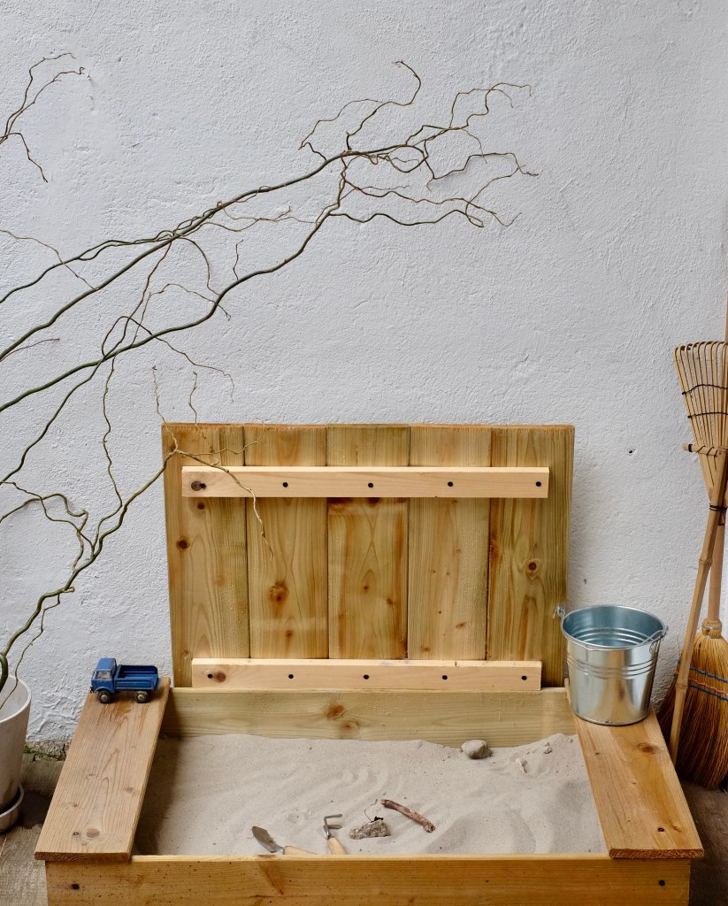 Ole vindt met zand spelen nog steeds een van de leukste dingen. Als ik hem vraag wat hij wil doen op een dag heeft de speelplek vaak een zandbak. Twee jaar geleden heb ik deze zandbak gemaakt, hij speelt er nog steeds graag in.