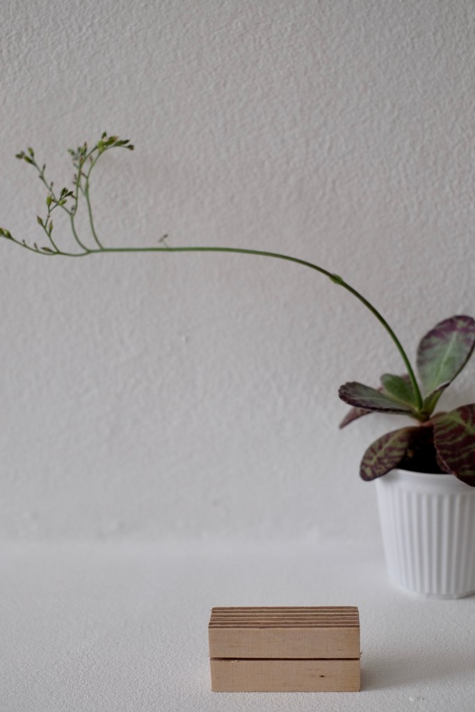 Van een klein stukje hout kan je gemakkelijk een kaarthoudertje maken. Alleen even zagen en klaar.