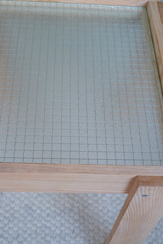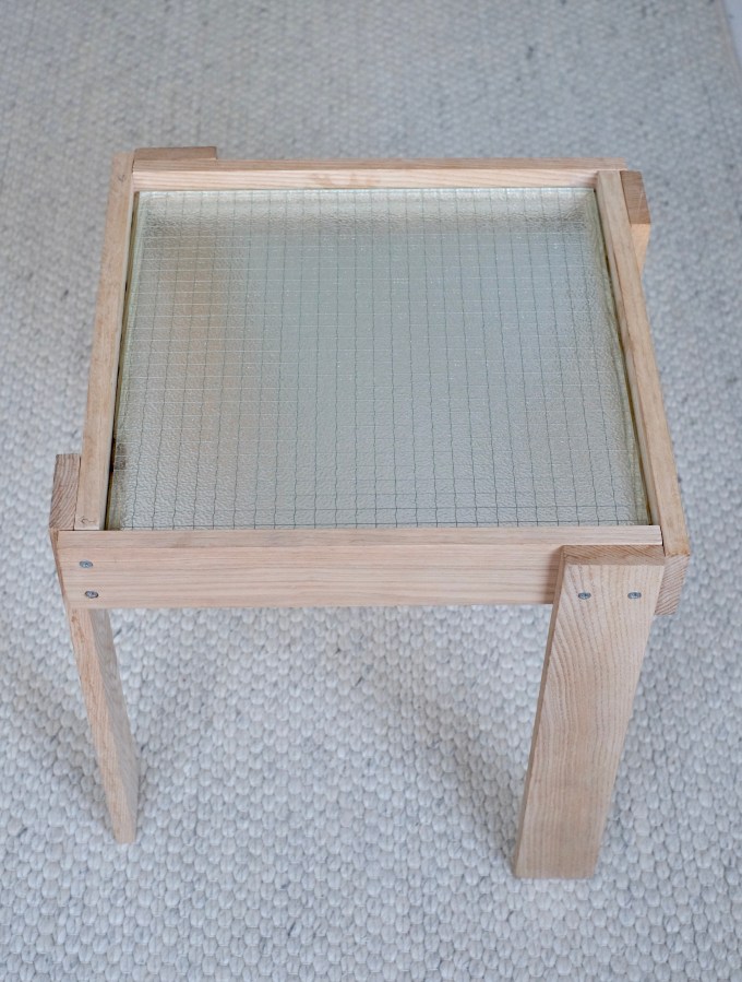 Een van de mooiste materialen vind ik veiligheidsglas. Daarom viel ik meteen voor de kast van Ferm living en kwam ik op het idee om er een tafeltje van te maken. Voor Rotterdam maakte ik van hout uit een container en een stukje veiligheidsglas dit tafeltje. Ik ben er behoorlijk trots op.