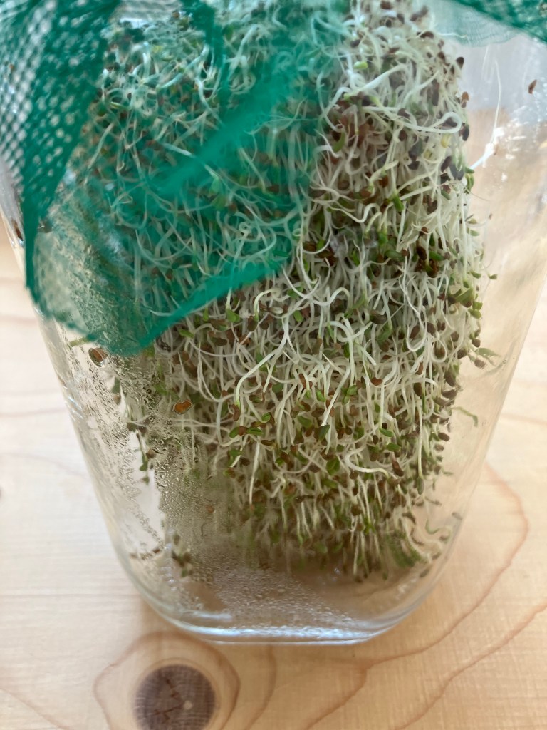 Van vrienden kreeg ik een setje om kiemen te laten groeien met verschillende soorten kiemen. Het is heel gemakkelijk en lekker. Bovendien groeien ze behoorlijk snel dus kunnen ze snel op je boterham.