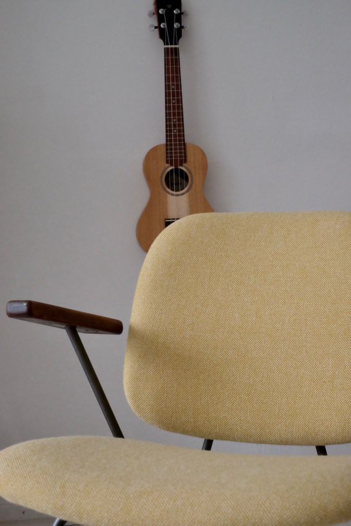 De studio heeft deze stoelen bekleed met een mooie rest stuk kvadrat stof.