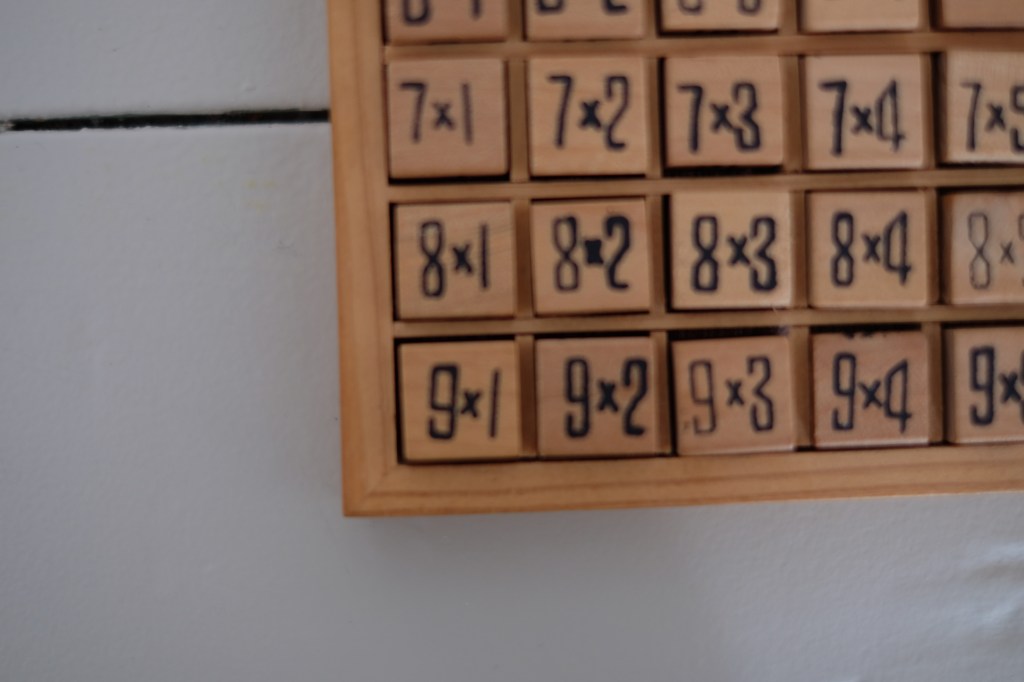 Ole is bezig met het leren van de tafels. In de kringloop vond Maaike een eenvoudige en mooie variant voor vijftig cent. Functioneel, tweedehands en precies op het juiste moment.