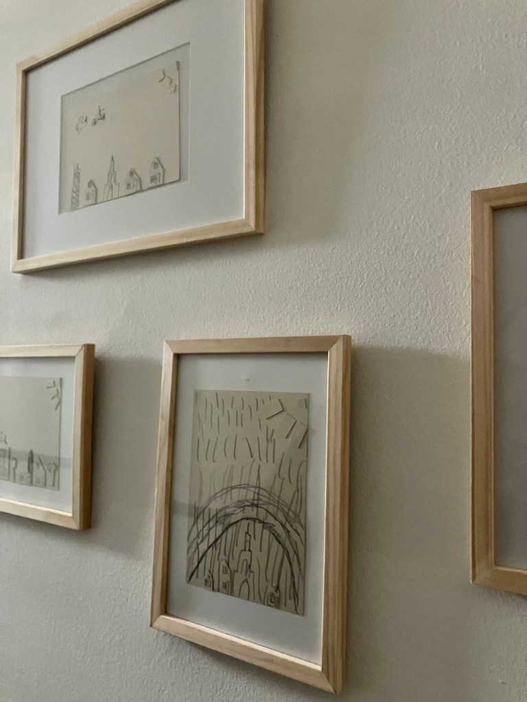Ole bezoekt met ons regelmatig musea en exposities en kreeg daardoor het idee om thuis zijn eigen tentoonstelling te organiseren. Zijn werk is speels en verrassend. Ik ben fan, al ben ik als moeder natuurlijk niet helemaal objectief.
