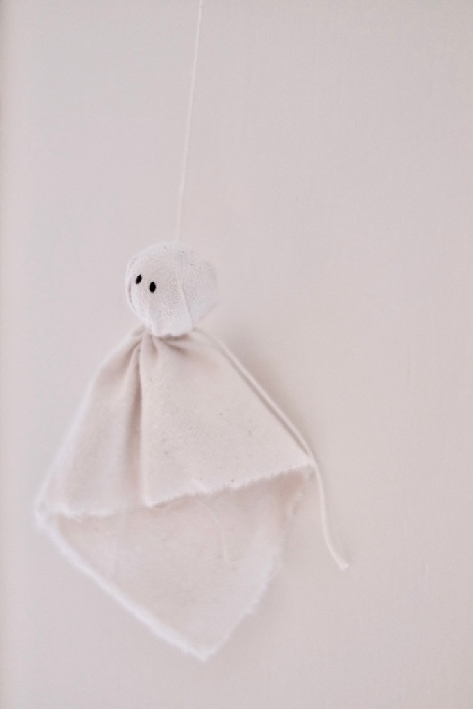 Ole maakte dit spookje voor Halloween van een oud lapje. Eenvoudig, speels en creatief hergebruik.