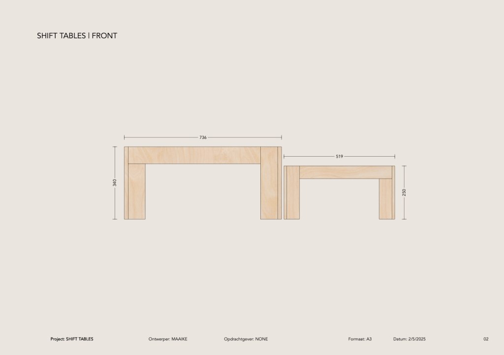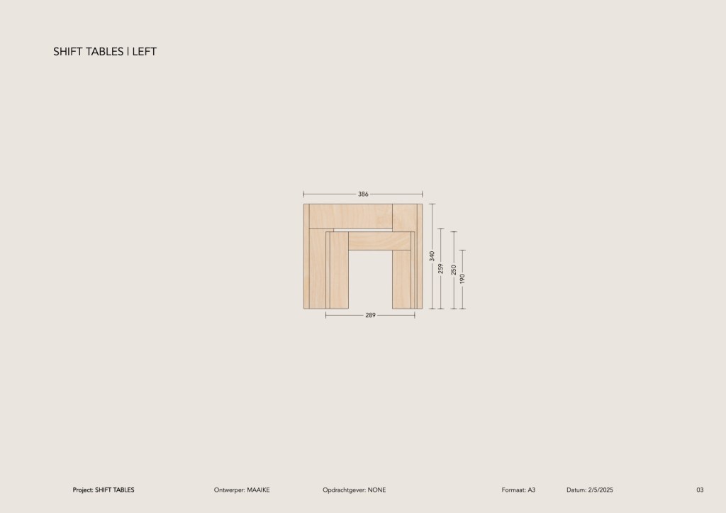 SHIFT is een serie tafels die zich aanpast aan de ruimte en aan de gebruiker. Het ontwerp begon als inzending voor een ontwerpwedstrijd en groeide uit tot een modulair, circulair tafelsysteem.