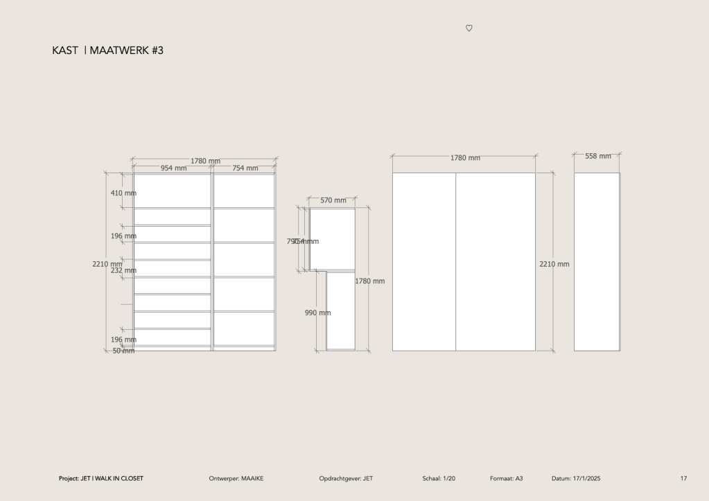 In samenwerking met de bewoners ontwikkelde Eenvoud Interieur een helder en functioneel ontwerp voor een walk-in closet. Een rustige indeling, tijdloze materialen en slimme opbergruimte vormen samen een stijlvol geheel dat naadloos aansluit op het dagelijks gebruik.